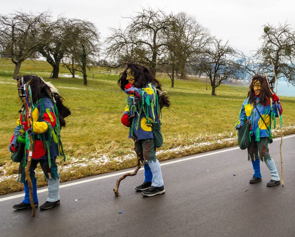 Vier Sumpfgoischder machten sich am Wochenende nach Aschermittwoch auf, um die Schweizer Fasnet zu erleben.